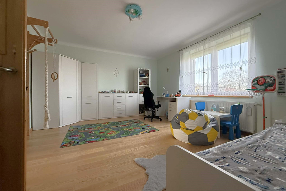 Duża działka daje wiele możliwości aranżacyjnych – znajdzie się tu miejsce zarówno na ogród, warzywnik, strefę rekreacyjną, jak i przestrzeń dla dzieci. To propozycja dla osób, które cenią prywatność i przestrzeń wokół domu.
