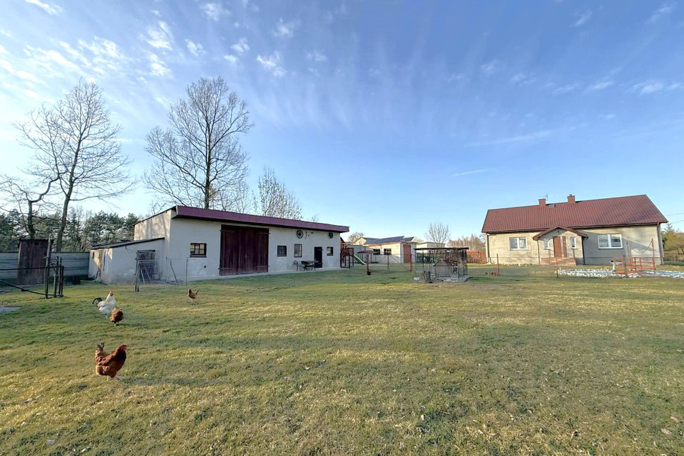 Jednym z największych atutów nieruchomości są budynki gospodarcze, które znacząco zwiększają jej funkcjonalność. Na działce znajduje się murowany budynek o powierzchni około 220 m², z wylewkami, częściowym stropem betonowym oraz dostępem do mediów, który doskonale sprawdzi się jako warsztat, magazyn lub przestrzeń produkcyjna. Kolejny budynek to garaż o powierzchni około 70 m², również murowany i solidny, a dodatkowo na posesji znajduje się jeszcze jeden garaż o powierzchni około 20 m² z kanałem. Całość jest zadbana i przygotowana do użytkowania.