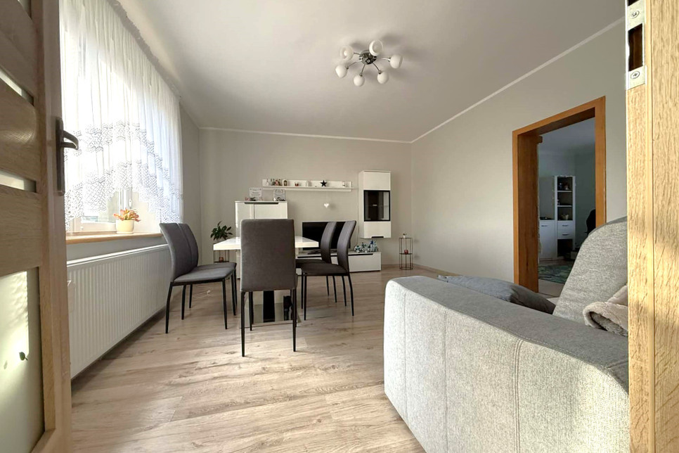 Dom parterowy przeszedł generalny remont w 2021 roku. W jego trakcie wykonano nowe instalacje elektryczne i wodne, położono nowe tynki i gładzie, wymieniono podłogi, a także w pełni wyremontowano kuchnię oraz łazienkę. Wnętrze jest zadbane, spójne i gotowe do zamieszkania bez konieczności ponoszenia dodatkowych nakładów.