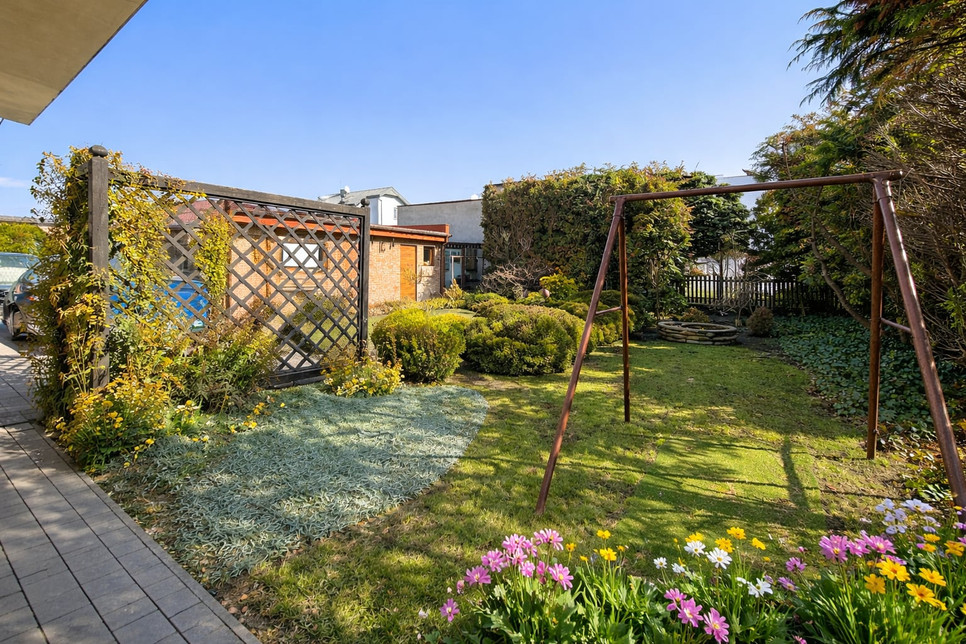 Działka w całości ładnie zagospodarowana – nowa kostka brukowa, zieleń i estetyczne otoczenie.