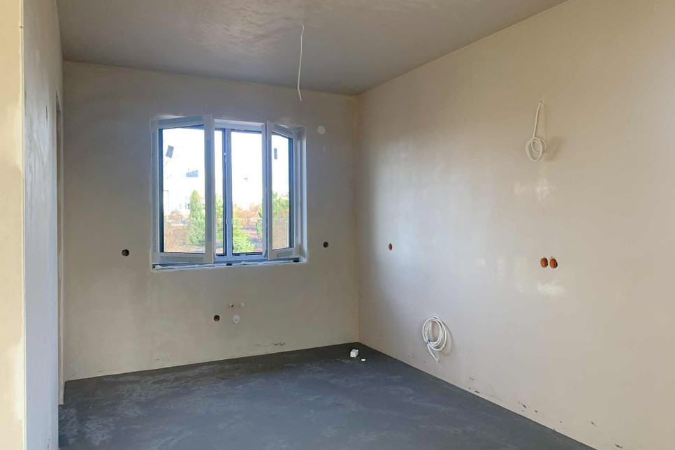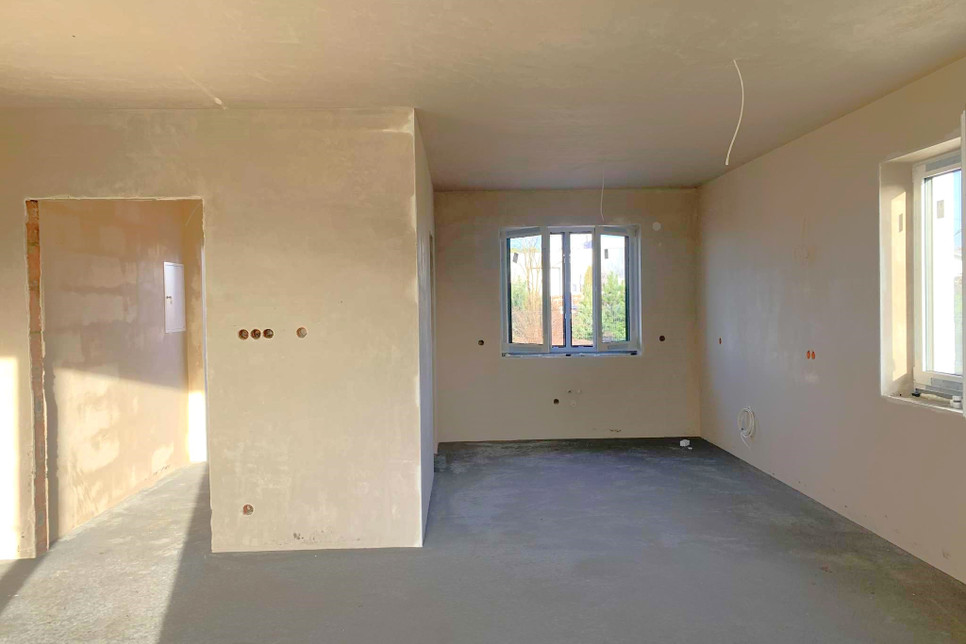 Ściany pokryte tynkiem gipsowym.
